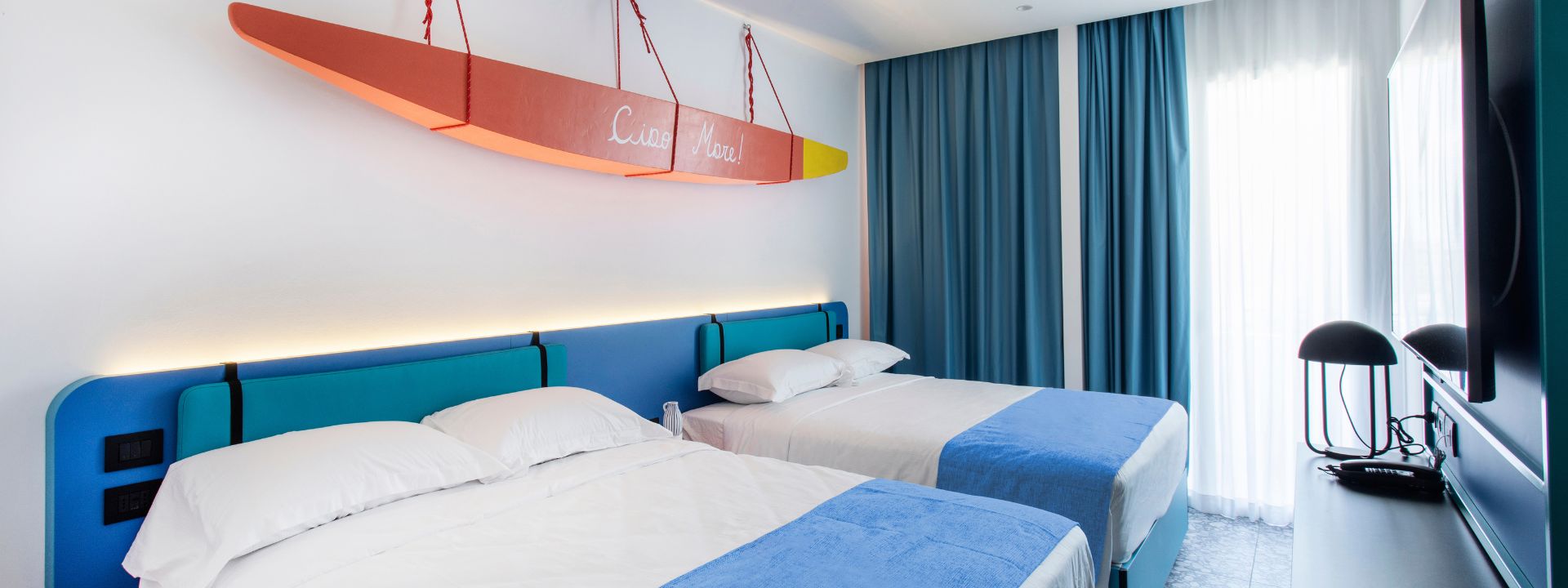Znajdziesz nas bezpośrednio nad morzem w Viserbella di Rimini, gdzie rodzinna atmosfera łączy się ze świeżością nowości, a każdy dzień pachnie